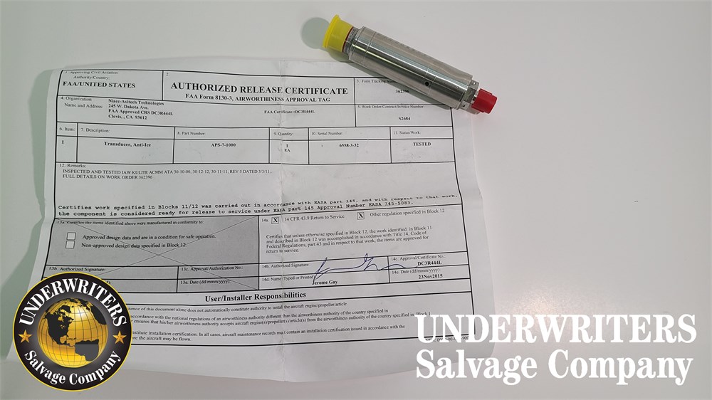 All items are sold “AS IS – WHERE IS” with no exceptions and with no refunds. Underwriters Salvage Company makes no express or implied warranties as to condition, fitness for purpose, value, airworthiness, operation, or performance of any kind whatsoever with respect to the sale of any item. Underwriters Salvage Company will not be responsible for the storage, safety or security of any item once released to the buyer.