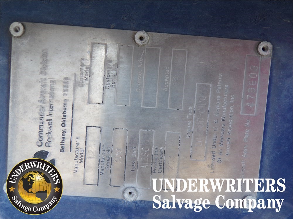 AIRCRAFT: 1975 Rockwell International 112 Commander N112EF S/N: 309 TT: 3,282